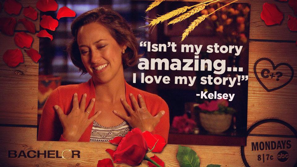 Ladies and gents, we have a live one. Either all of this confessional footage was shot after the series completed, or it was shot earlier in the season when Kelsey probably didn’t give a fuck, or we have a real, genuine crazy-pants on our hands. I get making fun of a bad situation. I get using humor as a way to cope with trauma. I even get creating a narrative of your life and imagining having your own TV show. I totally get that. We all do it! It’s human nature! But you are on an actual television show right now. To potentially marry someone. Someone she doesn’t actually seem interested in compared to getting attention and writing her own redemption tale. “This is the unfolding of somebody who’s been through something so tragic, and you get to watch her pick up the pieces,” Kelsey says, like she’s writing her own fucking casting page.