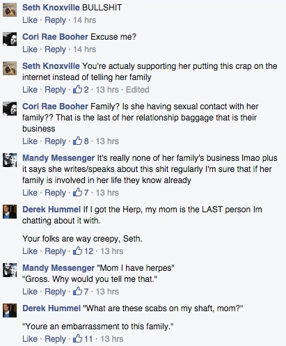 Other commenters wanted to tell my family that I had herpes (as if they don’t already know?).