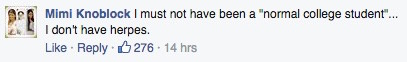 And I’m terrifically shocked by the ignorance of people about herpes & the whole “irresponsible” thing.